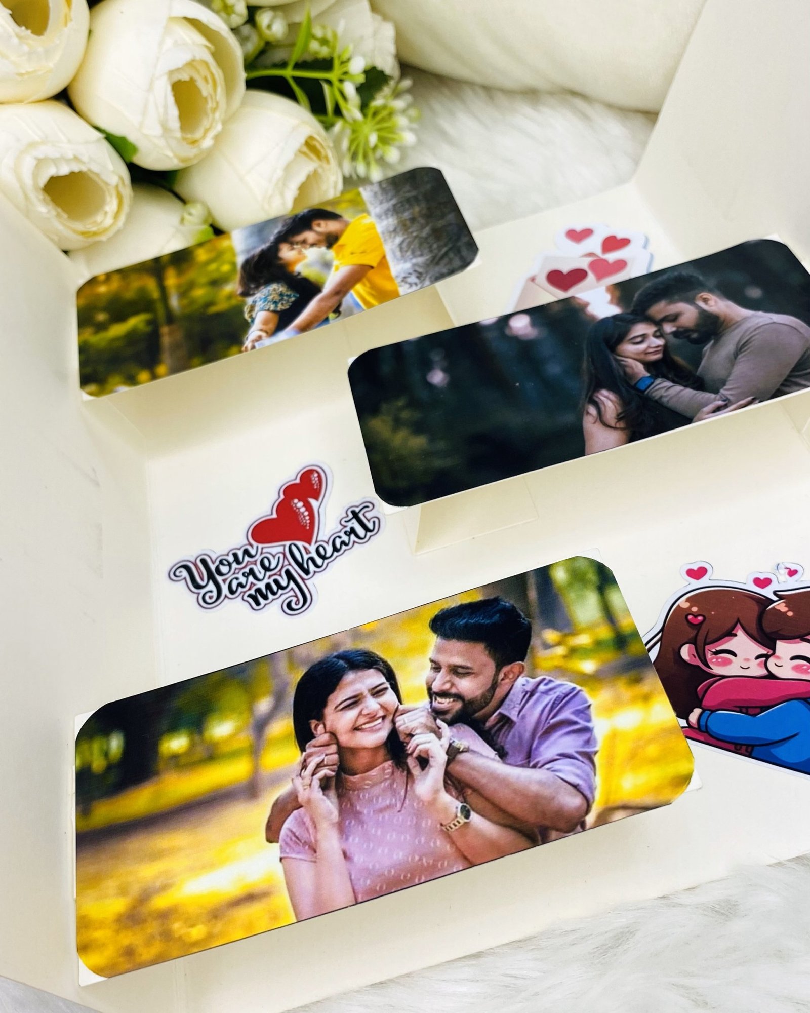 • Surprise your loved one with a Personalised Photo Pop-Up Greeting Card that combines creativity, thoughtfulness, and sentiment in one beautiful package. Featuring a unique pop-up design, this card brings your heartfelt message to life with a delightful 3D effect that adds a special touch to your gift. What sets this card apart is the option to personalise it with your favorite photo, making it a truly one-of-a-kind keepsake. Whether it’s a cherished memory, a funny moment, or a romantic snapshot, this custom element ensures your card is as unique as your relationship. Crafted with premium materials and meticulous attention to detail, this greeting card is designed to impress and last as a token of your love. Perfect for Valentine’s Day, anniversaries, birthdays, or just because, it’s a versatile way to show your appreciation and make your loved one feel extra special. Give the gift of love, creativity, and unforgettable memories with this personalised pop-up greeting card—a heartfelt keepsake that will be treasured forever. Express your love in a uniquely personal way with this beautifully crafted accordion-style greeting card. The elegant design features a romantic red and white colour scheme with delicate heart patterns and cascading rose details. This special card includes space for two cherished photographs, making it perfect for displaying treasured moments together. The centrepiece showcases a heartfelt message in striking red text, adorned with scattered heart motifs and a gorgeous rose border. The card's fold-out design creates an eye-catching display piece that stands beautifully on any surface. Ideal for Birthday / Anniversary occasion when you want to make your loved one feel extra special. The thoughtful combination of personalised photos and romantic sentiment makes this card a keepsake that will be treasured for years to come.