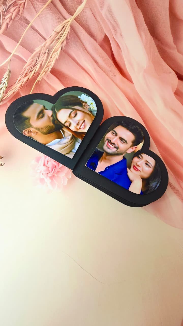 Mini Scrapbook Budget Friendly Cute Handmade Scrapbook | Personalized Photo Gift for Birthday Anniversary Valentine & Any Occasion | Customizable with 8 Photos (heart shape scrapbook (black)
