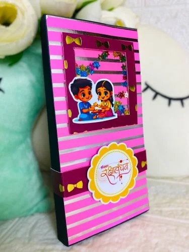 Celebrate the cherished bond of Raksha Bandhan with our beautifully crafted Rakhi envelope, thoughtfully paired with a delicious premium chocolate inside. Designed with elegant festive patterns and vibrant colors, the envelope carries not just your Rakhi, but also a sweet treat to delight your brother. Whether near or far, this unique combo makes your Rakhi gesture more memorable by combining tradition with taste.
