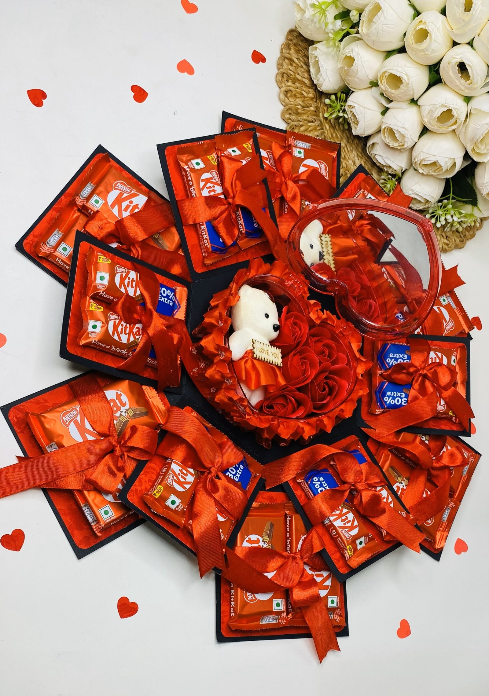 3 Layer Chocolate Explosion Gift Box For Couple Including 12 Chocolate (8 Kitkat Each 25 Rs & 4 Kitkat Each 10 Ra