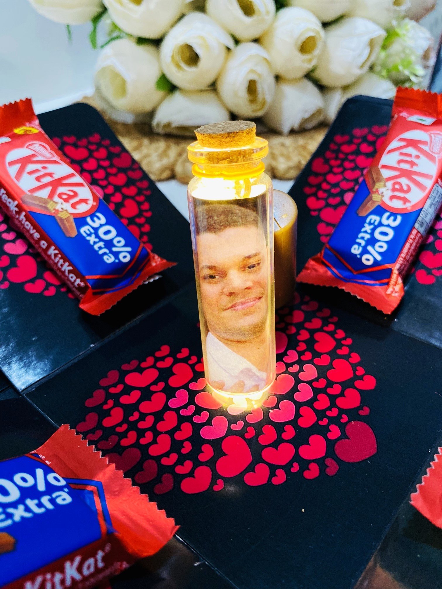 3 Layer Chocolate Explosion Gift Box For Couple Including 12 Chocolate (8 Kitkat Each 25 Rs & 4 Kitkat Each 10 Ra