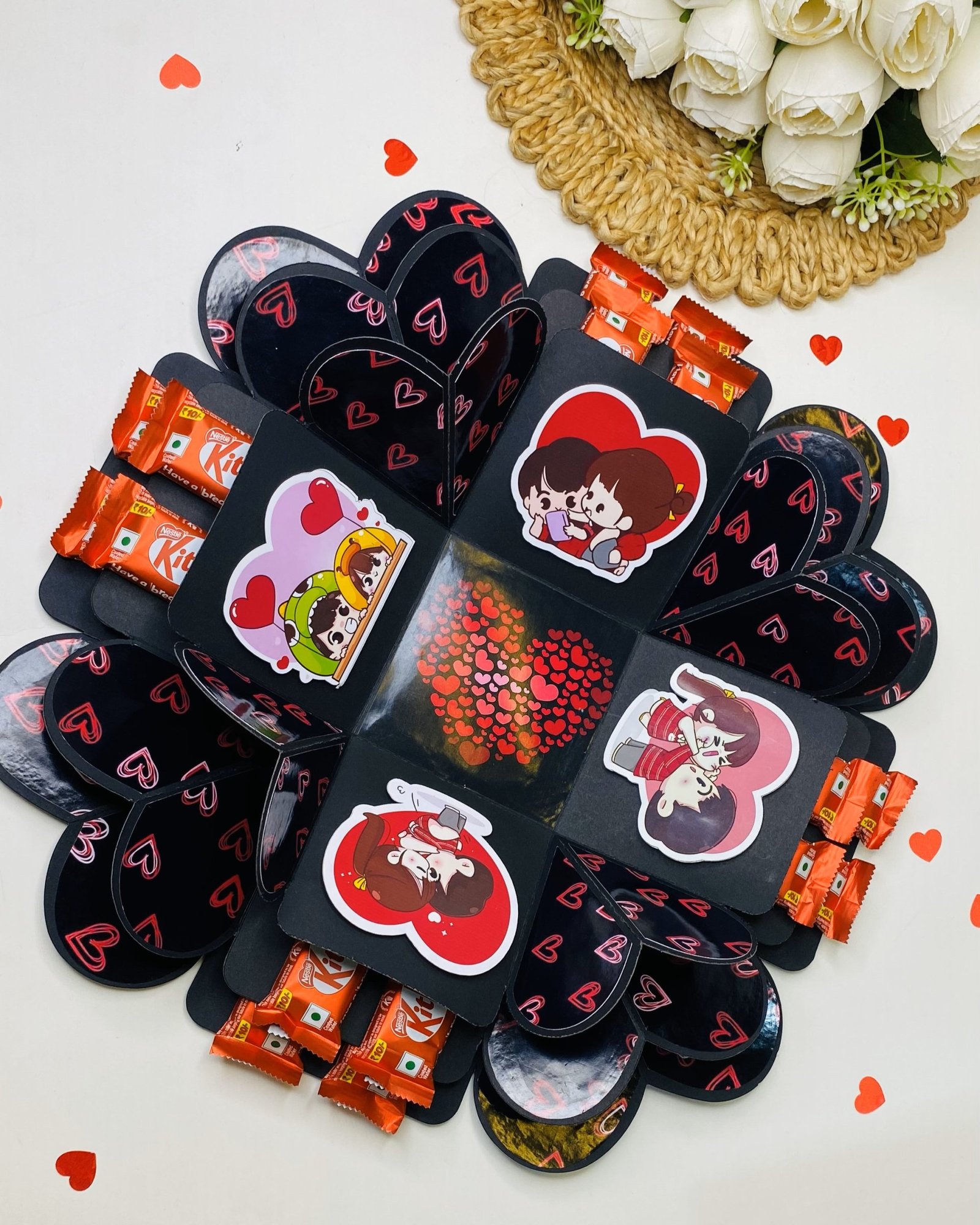 US IDEAL CRAFT 3 Layer Explosive Gift Box, Birthday Gift With 16 Chocolate (BLACK & RED)